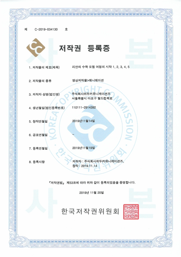 [한국/저작권] 애니메이션 리안의 수학 모험
